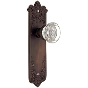 Product Description : The enduring beauty of P & F . Corbin's Lorraine pattern makes this door set a wonderful choice for your new or vintage home. Velvety bronze back plates, paired with sparkling, silver-backed glass knobs, give your doors a lovely period look. This circa 1905 design is faithfully recreated in steel stamped bronze and finished to perfection with subtle, coppery highlights - just like the antique originalsDoor set dimensions: Doorknobs measure 2" in diameter. Back plates measure 8 5/16" H x 2 9/16" W.Latch dimensions: Backset: 2 3/8" (non-standard 2 3/4" backset available; call for details). Latch case: 7/8" diameter. Latch face plate: 2 1/4" H x 1" W.