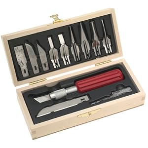 Product Description : From the ManufacturerThe X5224 is a standard woodcarving set with precision quality tools to meet general woodworking needs. Gouges and blades for cutting, leveling, shaping and whittling. Includes: No. 5 Knife w/No. 19 Blade; 1 each No. 15, 18, 22, 24, and 26 Blades; 1/16" V Carving, 3/8" Wide Carving U, 3/8" Wide Carving V, and 3/16" Narrow Carving V Gouges; 1/4" Wide Carving and 3/16" Narrow Carving Chisels. Comes with a wooden chest. Product Description : Precision quality tools to meet general woodworking need. Gouges and blades for cutting, leveling, shaping and whittling. Includes #5 knife with #19 blades; #15, 18, 22, 24 and 26 blades; 1/16" V carving, 3/8" wide carving V and 3/16" narrow carving V gouges and 1/4" wide carving and 3/16" narrow carving chisels. Wooden case.