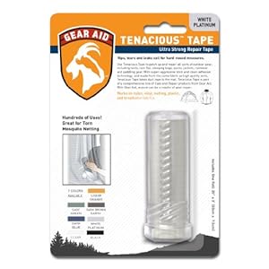 Product Description : Super-aggressive adhesive for long lasting repairs. Clean adhesive technology leaves no sticky ugly residue. Made from the same fabric as high-quality tents. Lightweight andpact - easy to carry in the field. Clear nearly invisible adhesive. Can be used in conjunction with Seam Grip and other urethane adhesives for ultra strong repairs. Includes one 3" x 20" strip of tape.