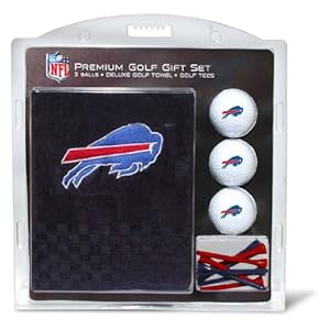 Category: Sports & Outdoors Vendor: Three regulation imprinted golf balls 16" x 22" 100 % cotton tri-fold embroidered towel Checkered scrubber design with bottom e Product Description : NFL Buffalo Bills Embroidered Golf Towel (3 Golf Balls/12 Tee Gift Set)