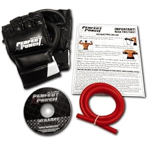 Product Description : Jay Glazer's Perfect Punch MMA Resistance Training System Punch your way to the perfect body! Progressive resistance and interval training shred fat and get you ripped in just 15 minutes a day! Compact size means Perfect Punch goes wherever you do. Great for the home, office, gym and hotel room. Form feedback stripe guarantees a powerful twist. Resistance increases as your punch extends. Perfect Punch is a MMA resistance training system. It allows you to burn calories while punching your way into shape without a gym. the resistance enhanced repetitions help to maximize your results. Power Punch helps to gain speed, perfect your technique, and develop knock out power. Resistence enhanced repititions increase power and accuracy while locking in perfect technique. This training creates lightning quick, crazy poweful punches delivered with pinpoint precision every time. MMA Champion Kevin "The Monster" Randleman trains with Perfect Punch! Get speed, technique and explosive power! Features: Comfort foam plus elastic chest strap keeps the band in place on even the hardest punches Heavy duty band creates progressively tougher resistance throughout the striking motion Form feedback stripe gives you instant feedback for perfect technique System includes: High quality MMA Training gloves that fit most men and women Jay Glazer's Pro MMA workout DVD Advanced XTRA Resistance Powerband