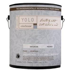 Product Description : From the ManufacturerYOLO Colorhouse premium paints and primer are zero VOC, low odor, and - created by artists with nature in mind. Experience this artful palette that celebrates healthy living and the environment. A water-based latex primer with no carcinogens, no mutagens, no hazardous air pollutants, and no ozone-depleting compounds. YOLO Colorhouse Primer performs like a premium conventional primer, with excellent hide and adhesion. For use on new wallboard, non-bleeding raw woods, and for transitioning from a darker to lighter color. Covers 350 sq. feet per gallon. Dry time to touch is 30 min. and dry time to re-coat is 1 hour (77?F and 50% humidity). May be thinned up to 1/2 pint clean water/gallon if necessary.