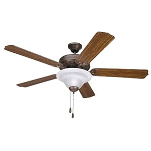 Product Description : From the ManufacturerThe Builder Fan Collection, by Yosemite Home Decor, offers a variety of finishes with the option to install a 4-light kit, dome light kit or no light kit at all. The 5BD52DB+LK106 has a dark brown frame with white dome alabaster glass light kit. Distressed pine and American walnut blades are included in the box and ready for assembly. This particular fan includes (2) E26 CFL 13-Watt fluorescent bulbs. When it comes to passing inspection this fan is UL, cUL, ETL, CE, TUV and ROHS certified and has a limited lifetime warranty that is limited to the motor after the first year. This fan is quiet enough to hear a pin drop and moves air at 3 different speeds so you're sure to find this a comfy addition to any room. There is an optional canopy remote with receiver available for this fan that can not only control the fans speed but the lighting also if a light kit is installed. Located in Fresno, California, Yosemite Home Decor is a premier leader in lighting and other unique home products. These are carefully crafted and inspected before leaving our care to ensure that only the best make it to your home. In addition to our two full lines of lighting we offer a wide variety of other products such as stone, copper, glass and stainless steel sinks, contemporary and traditional artwork, fireplace mantles, range hoods and outdoor living decor. Our goal is to offer our customers quality and value for a wide range of needs whether it be for residential or commercial use. We have total commitment to a "customer first" attitude and we are here to do whatever it takes to make sure our customers receive nothing but the best. Product Description : Yosemite Home Decor 5BD52DB+LK106 Features: -52" Ceiling fan with light kit. -Builder collection. -Dark brown finish. -Blade finish: Combination of maple and walnut. -White alabaster glass shade. -3 -Speed reversible pull chain. -Includes 4" downrod. -Includes light kit. -UL, cUL, ETL, CE, TUV and ROHS certified. Specifications: -Accommodates (4) 60W medium base incandescent bulbs. -Manufacturer provides limited lifetime warranty. -Overall dimensions: 19" H x 52" W x 52" D.