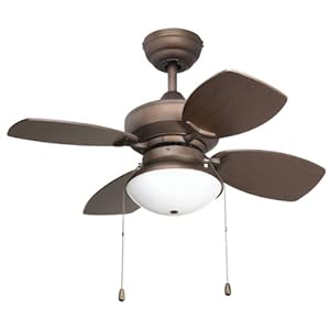 Vendor: Requires 1 medium based 13 Watt CFL bulb Oil rubbed bronze frame with opal white glass; Teak blades Controlled by a 3-speed pul