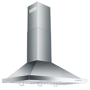 Product Description : 36" Wall Mounted Range Hood. 3 Speed Touch Sensitive Electronic Controls, 3 Baffle Filters, Easy to Install With Everything Included! In Stock for Immediate Delivery in Chimney Extensions Available for up to 12' Ceiling This Attractive and Versatile Wall Mounted Range Hood looks and works great in every size. Easily Convertible to "Ductless" by adding the optional Activated Charcoal Filters this unit is easy to install and built for years of trouble free use. This Range Hood comes with blower and fan completely installed, and factory tested. This makes the installation one of the easiest in the industry. KB Wall Hood *Power: 110 v/60 Hz *Material: 430 Brushed Stainless *Output: 760 cfm *Lighting: 2 - 25w Halogen Lights *Controls: 3 Speed Touch Sensitive Electronic *Filters: 3 BAFFLE *Air Outlet: 6" *Certification: CE, GS, and CCC safety approvals (US and Canada) *Hood + Chimney Extends from 26.3"- 40" *Easily Convertible to "Ductless" operation *Efficient and Quiet Operation