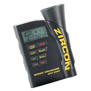 Product Description : From the ManufacturerZircon's DM S50 utilizes ultrasonic technology to measure up to 50-Feet (15 m) with the click of a button. Press one button to choose what you would like to do; The DM S50 prompts you to take all needed measurements and calculates your answer. There is no need to enter numbers or choose functions. Measurement functions include length, area, volume, double segment length and continuous measurement. The double segment feature measures lengths up to 100-Feet (30 m). A laser pattern illuminates target area to aid accuracy. Memory feature retrieves last measurement taken. Additional features include easy to read LCD screen, automatic shut-off after 30 seconds and low battery indicator. Zircon's DM S50 is great for estimating the quantity of paint, flooring paneling or wallpaper needed for a job.