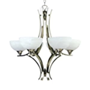 Product Description : From the ManufacturerThe Spruce chandelier collection, by Yosemite Home Decor, embodies the aesthetic features of contemporary artistry with a touch of sophistication. This model's Satin Nickel frame and White Alabaster glass blend in very well with contemporary cosmopolitan architectural design, while its six 60-watt incandescent lights easily provide crisp, clean illumination to a large room or foyer. UL-approved, you can rest assured this model is safe for use in your home. With its one-year warranty, we have this product covered during the first year. Each sale comes with about six feet of chain and eight feet of wire. Product Description : 4436-6SN Features: -Six light chandelier.-White frosted glass shade.-Contemporary cosmopolitan architectural design.-UL rated. Includes: -Includes decorative chain and canopy. Color/Finish: -Satin nickel finish. Specifications: -Accommodates (6) 60W medium base incandescent bulb (not included). Assembly Instructions: -Assembly required. Dimensions: -Overall dimensions: 29'' H x 27'' W x 27'' D. Collection: -Spruce collection. Warranty: -Manufacturer provides 1 year warranty.