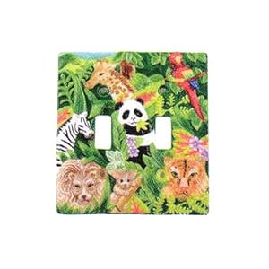 Vendor: Pattern: Jungle One double toggle lightswitch-plate cover, 4.75 X 4.75 inches (12.07 X 12.07 cm). Includes mounting screws. Ins