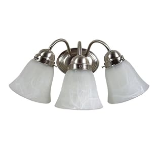 Product Description : From the ManufacturerThe JH053-3SN by Yosemite Home Decor is a beautiful piece that would fit nicely in any bathroom. The satin nickel frame curves downward, allowing the three lights to hang overhead. The incandescent bulbs are enveloped with white marble glass, allowing for a clean bright light to flood your room. This piece is also available in a dark brown finish (JH053-3DB). It requires three medium-based, 60-Watt incandescent bulbs for use (bulbs not included). Located in Fresno, California, Yosemite Home Decor is a premier leader in lighting and other unique home products. Our products are carefully crafted and inspected before leaving our care to ensure that only the best make it to your home. In addition to lighting, Yosemite Home Decor offers a variety of products ranging from stone, copper and stainless steel sinks to artwork and outdoor living decor so that we may offer our customers quality and value for a wide range of needs. Product Description : Vanity Lighting Three Light Down Lighting 17" Wide Bathroom FixtureSwirled white marble glass shade held in place by graceful arched arms.Features:Three light down lighting bathroom fixture featuring white marble glass shadesMetal with glass constructionUL Rated for damp locations1 year warranty on partsAssembly RequiredSpecifications:Requires (3) x 60 Watt Medium base bulbs (Not Included)Height: 8.5"Depth: 8"Width: 17"