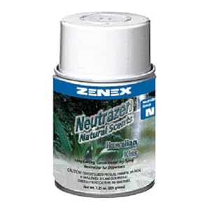 Product Description : Neutralizes Malodors Long Lasting Control Dry Spray, No Fall out Leaves a pleasant scent Non-Staining Non-Chlorinated, No CFC's For use in automatic dispensers. Formula delivers maximum fragrance and odor control with measured releases. Deliciously scented, finely atomized spray carries farther and lasts longer. Non-chlorinated. V.O.C. compliant. Chemically neutralizes malodors. Dry spray particles. Application and Uses For use in locker rooms, hospitals, nursing homes, smoking areas, cars, boats, RVs, motels, restaurants, bathrooms, carpets, upholstery, draperies, and fabrics. Eliminates tobacco smoke, cooking odors, mold, and mildew odors. Directions for Use STANDARD USAGE: Place aerosol dispenser refill in metered dispenser. Controls odors for up to 4,000 cubic feet. Emits pre-measured dosage every 15 minutes for up to 40 days. Each can contains 3,800 metered releases. MANUAL USAGE: Press once to release. Appropriate dosage is instantly dispersed. Repeat if necessary. Scent: Hawaiian Kiss Can Size: 10 oz (283 g) Net Weight: 7.25 oz (205 g) /Can Minimum Order: 1 Case (12 Cans) Important Note: Check can label and Material Safety Data Sheet for any additional limitations and warnings. *****WARNING!*****WARNING!*****WARNING!*****WARNING!*****WARNING!*****WARNING! PRODUCT CANNOT SHIP VIA ANY TYPE OF AIR TRANSPORT, INCLUDING UPS NEXT DAY AIR, UPS 2ND DAY AIR, UPS 3 DAY SELECT, FEDERAL EXPRESS, PRIORITY MAIL, ETC. THIS PRODUCT MUST SHIP VIA GROUND TRANSPORTATION ONLY!!!