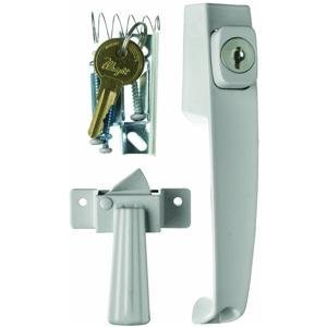 Product Description : For outswinging wood or metal doors. Fits doors 1'' to 1 1/4'' thick. Installs with only three 1/4'' holes. Installation hole spacing 1 3/4''. Contains 2 sizes of strikes and shims to provide adjustment for latching. Has No Lock Out feature. Exterior has key lock for extra security.