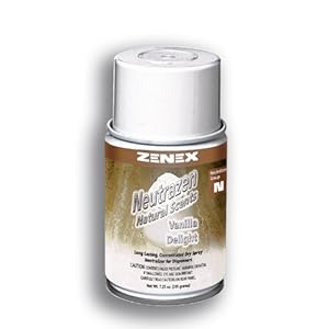 Product Description : Neutralizes Malodors Long Lasting Control Dry Spray, No Fall out Leaves a pleasant scent Non-Staining Non-Chlorinated, No CFC's For use in automatic dispensers. Formula delivers maximum fragrance and odor control with measured releases. Deliciously scented, finely atomized spray carries farther and lasts longer. Non-chlorinated. V.O.C. compliant. Chemically neutralizes malodors. Dry spray particles. Application and Uses For use in locker rooms, hospitals, nursing homes, smoking areas, cars, boats, RVs, motels, restaurants, bathrooms, carpets, upholstery, draperies, and fabrics. Eliminates tobacco smoke, cooking odors, mold, and mildew odors. Directions for Use STANDARD USAGE: Place aerosol dispenser refill in metered dispenser. Controls odors for up to 4,000 cubic feet. Emits pre-measured dosage every 15 minutes for up to 40 days. Each can contains 3,800 metered releases. MANUAL USAGE: Press once to release. Appropriate dosage is instantly dispersed. Repeat if necessary. Scent: Vanilla Delight Can Size: 10 oz (283 g) Net Weight: 7.25 oz (205 g) /Can Minimum Order: 1 Case (12 Cans) Important Note: Check can label and Material Safety Data Sheet for any additional limitations and warnings. *****WARNING!*****WARNING!*****WARNING!*****WARNING!*****WARNING!*****WARNING! PRODUCT CANNOT SHIP VIA ANY TYPE OF AIR TRANSPORT, INCLUDING UPS NEXT DAY AIR, UPS 2ND DAY AIR, UPS 3 DAY SELECT, FEDERAL EXPRESS, PRIORITY MAIL, ETC. THIS PRODUCT MUST SHIP VIA GROUND TRANSPORTATION ONLY!!!